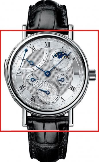 To perfect this unmistakable luxury watch, the Aligator strap bracelet sets a perfect accentuation of the case with 18 kt white gold, Polished, Sapphire glass curved, See-through sapphire glass back. The functions of this luxury watch include Day/date, Anual calender, Repetition-minute, Month, Moonphase, Leap year display, Hour minute.