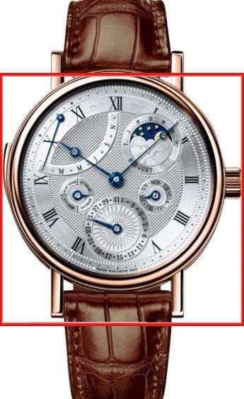 To perfect this unmistakable luxury watch, the Aligator strap bracelet sets a perfect accentuation of the case with 18 kt red gold, Polished, Sapphire glass curved, See-through sapphire glass back. The functions of this luxury watch include Day/date, Anual calender, Repetition-minute, Month, Moonphase, Leap year display, Hour minute.