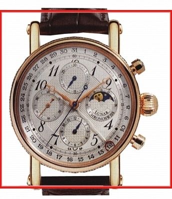 To perfect this unmistakable luxury watch, the Aligator strap bracelet sets a perfect accentuation of the case with . The functions of this luxury watch include Chronograph, Date, Moonphase, Hour minute.