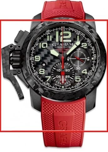 The face of the dial has Color black, Carbon and the bezel is Karbon. This men’s watch comes with a 25 jewels, Power reserve 48 hour, Half-oscillations A/h 28800, Incabloc anti-shock protection, Mechanical movement self winding, Graham caliber G1747, automatic chronograph movement. The Rubber, Red bracelet completes the picture of this men’s watch. The functions of this luxury men’s watch include Chronograph, Date, Hour minute. Find more mens watches on the men’s watch category page.