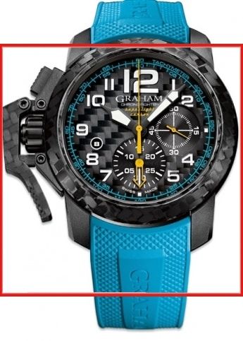 The face of the dial has Color blue, Color black, Carbon and the bezel is Karbon. This men’s watch comes with a 25 jewels, Power reserve 48 hour, Half-oscillations A/h 28800, Incabloc anti-shock protection, Mechanical movement self winding, Graham caliber G1747, automatic chronograph movement. The Rubber, Blue bracelet completes the picture of this men’s watch. The functions of this luxury men’s watch include Chronograph, Date, Hour minute. Find more mens watches on the men’s watch category page.