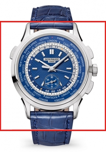 To perfect this unmistakable luxury watch, the Aligator strap bracelet sets a perfect accentuation of the case with 18 kt white gold, Floor with window, Polished, Sapphire crystal glass, See-through sapphire glass back. The functions of this luxury watch include Chronograph, Smal second, Hour minute, World time display.