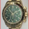 The face has Color green, Subdials, Hands 18 kt. gold and the lunette is 18 kt yellow gold, Engraved tachymeter scale. The movement is Breguet spring, Half-oscillations A/h 28800, KIF Elastor anti-shock protection, Mechanical movement self winding, Rolex caliber 4130, 44 jewels, 72 hour power reserve.